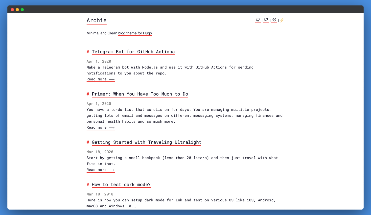 Archie is a minimal and clean theme for hugo with a markdown-ish UI.